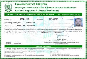 It is a pleasure to introduce our firm Frontline Corporation, holding Lic. No. MPD-2604/LHR. We are Overseas Employment Promoters dealing in skilled and unskilled manpower supply according to the demands of our Principal.Being renowned protector fully conversant with the procedures pertaining to Visa formalities etc, we are familiar to the process of documentation to get clearance from overseas concerned departments and all the channels within the Interior Ministry of Saudi Arabia. We organize interviews and tests of the candidates according to the wish and satisfaction of our Principal. We are having at our panel government approved medical specialists for fool-proof health report after selection of the workers.